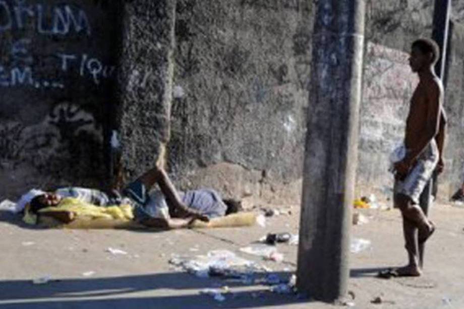 Placa colocada por traficantes na favela de Jacarezinho, no subúrbio do Rio de Janeiro, em junho, mostrando que o crack não estava valendo a pena para ninguém