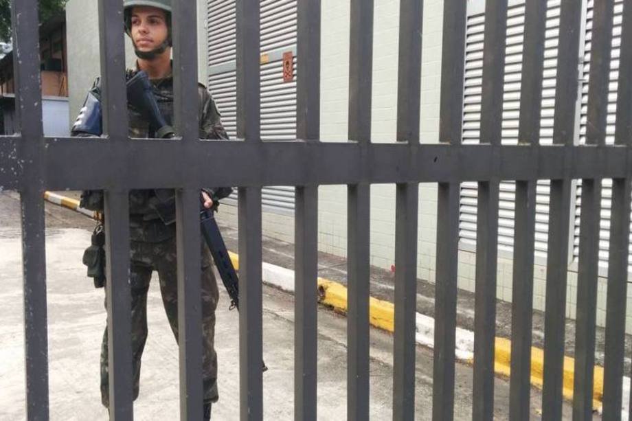 Soldado do Exército na porta das dependências da Sabesp, na zona Oeste de São Paulo (Talita Abrantes/Exame.com)