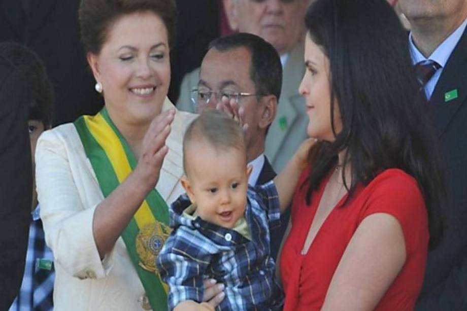 A presidente viu o desfile da tribuna de autoridades, ao lado da filha, Paula Rousseff, e do netinho, Gabriel, de 1 aninho.