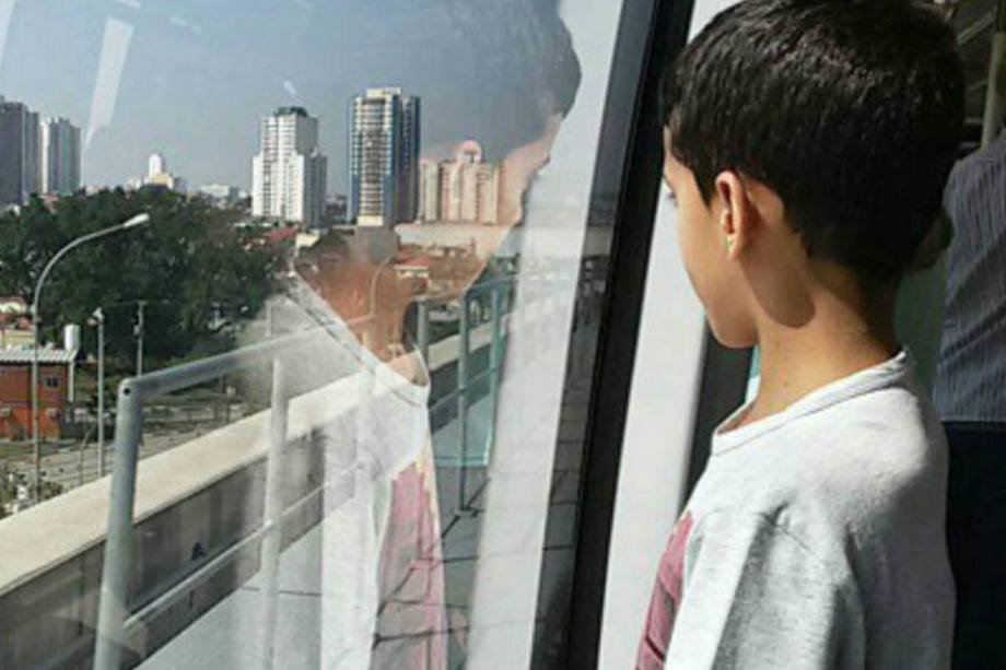 11. Garoto olha por uma janela do monotrilho de São Paulo