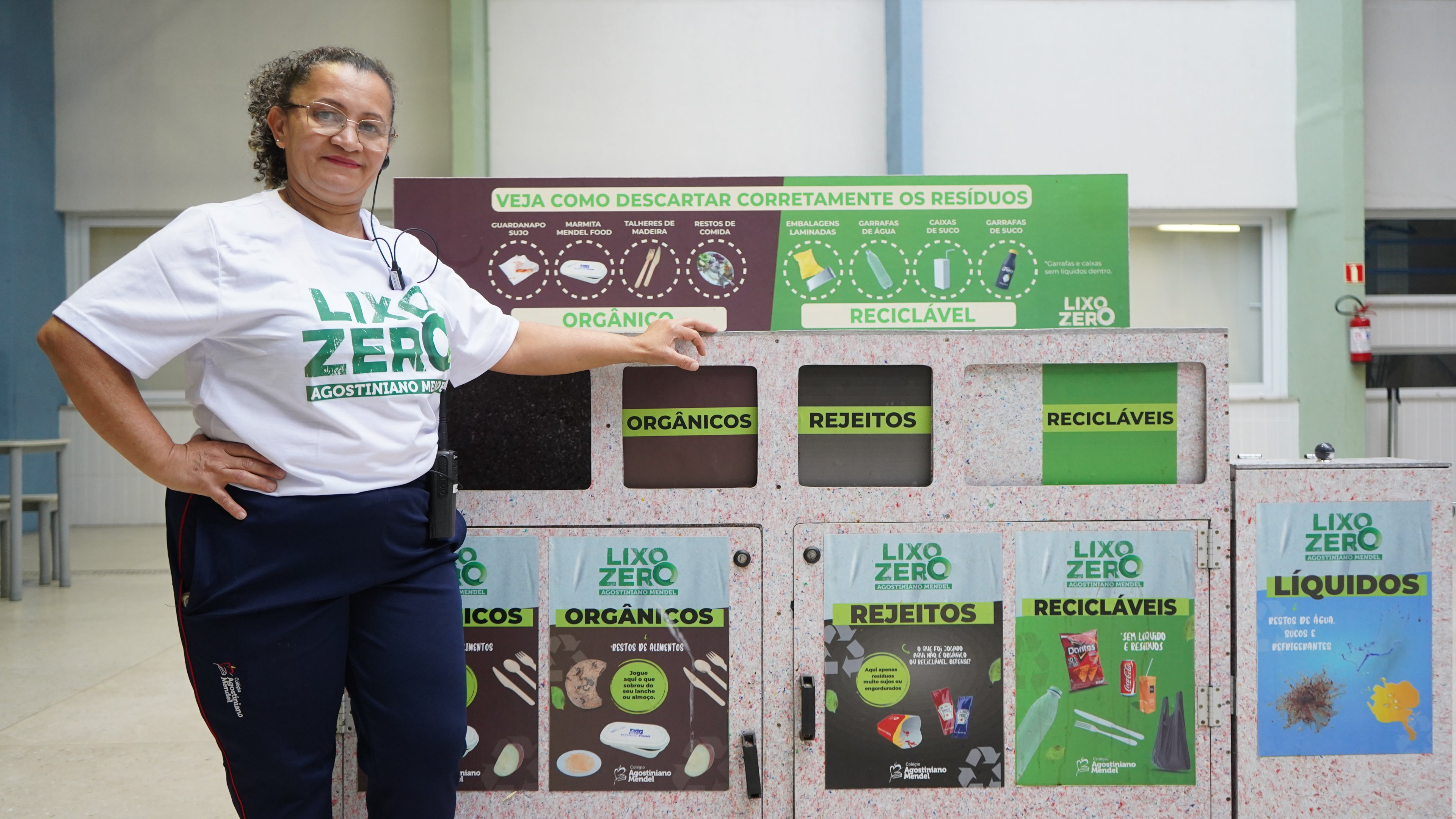 “O Lixo Zero, na verdade, é uma metodologia de gestão de resíduos. Mas ele vai muito além dos resíduos. É uma forma da gente atingir o aluno, a família e o colaborador para trabalhar conceitos muito mais amplos, como economia circular e consumo consciente”, explica a professora Luciana Barão Acuña, uma das lideranças do projeto Lixo Zero na escola.