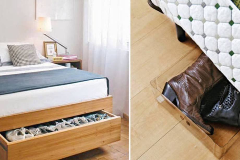 Usar o vão embaixo da cama é uma das maneiras mais práticas de aproveitar - e economizar - espaço dentro de casa. Gavetas planejadas em marcenaria, inseridas nesse espaço, permitem maior organização e cuidado com os pares de sapato. Outro truque similar que já demos no Casa.com.br é o de colocar botas em caixas de acrílico, bem embaixo das camas tradicionais.