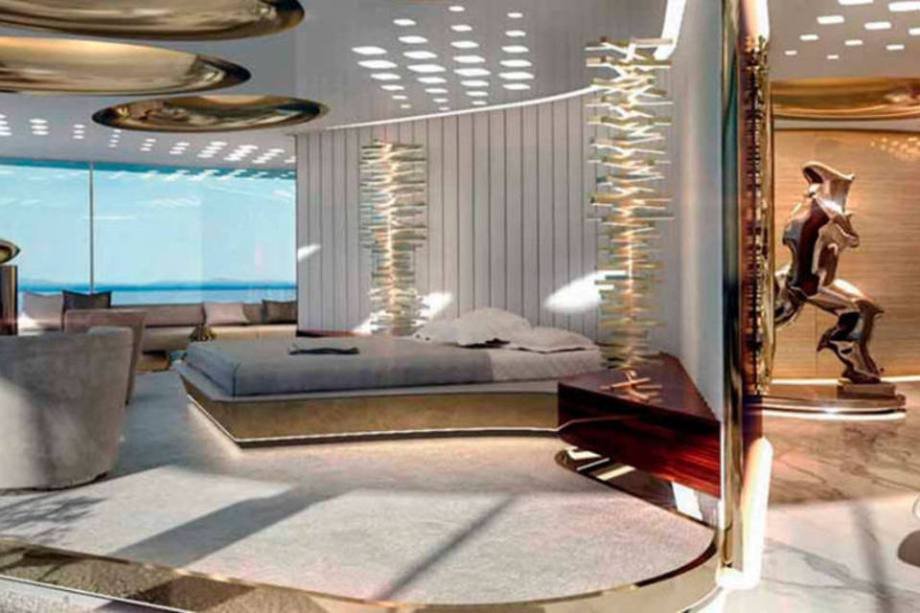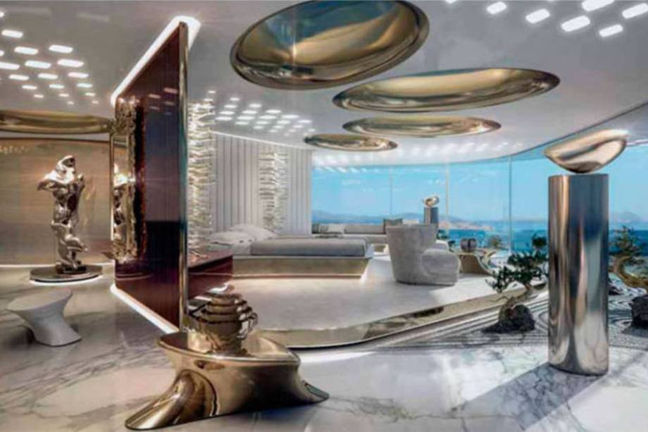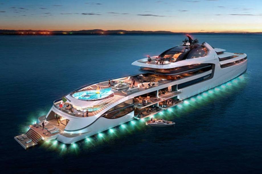 O preço está atrelado ao conforto que o iate oferece: dois heliportos, duas piscinas, dois cinemas, sala de ginástica, jardim zen, além de inúmeras suítes luxuosas.