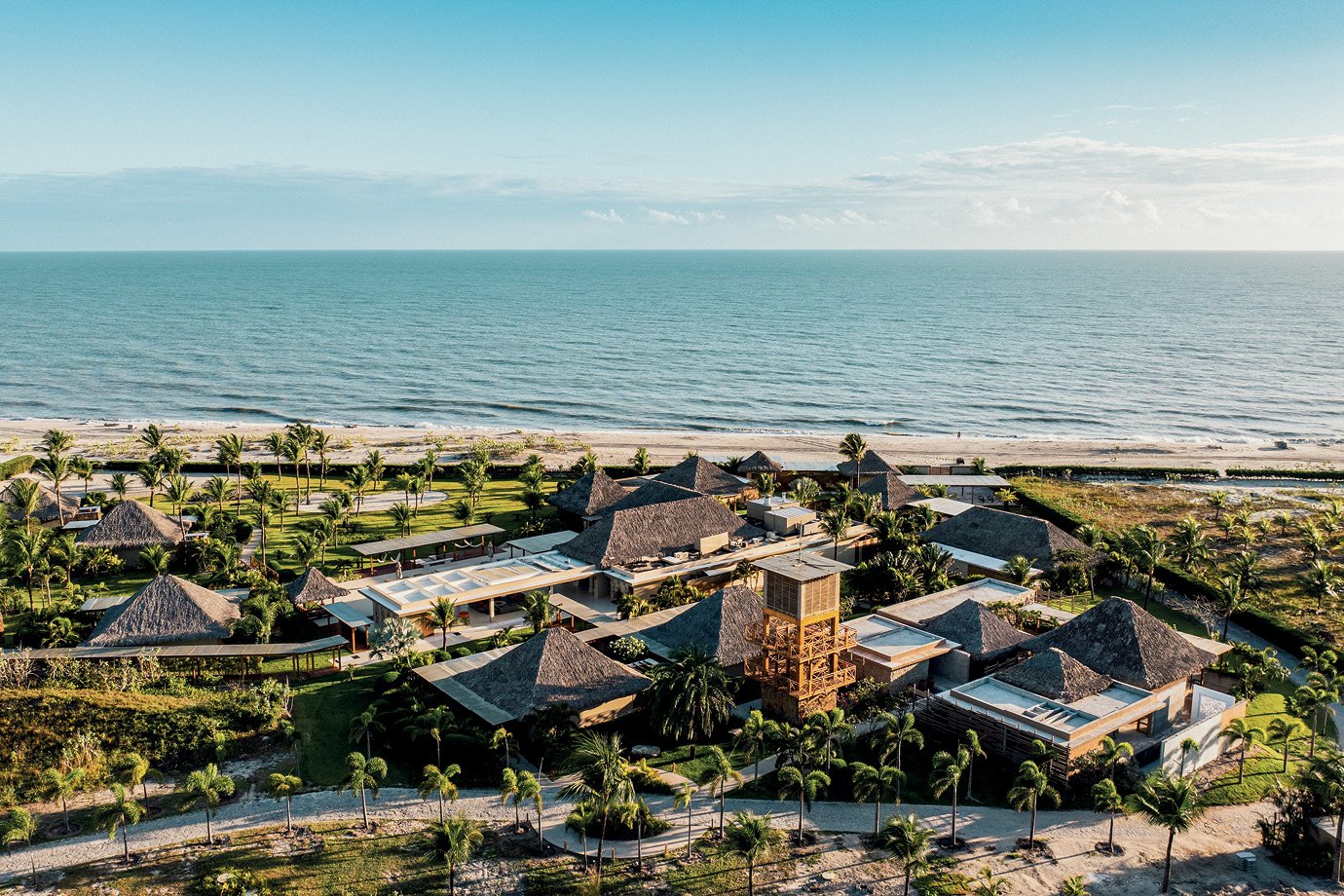 Um cenário que contempla a segunda maior barreira de corais do mundo, com praias desertas, piscinas naturais e coqueiros a perder de vista, precisa de um hotel à altura. Em São Miguel dos Milagres, litoral alagoano, está o Mahré Hotel & Spa. Inaugurado em 2023, a propriedade oferece 30 suítes com piscina, jardim privativo e massagens no quarto sob demanda, que também podem ser rea­lizadas na varanda, em meio à natureza.