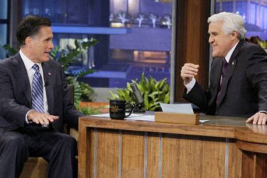 9. Mitt Romney (E) e o apresentador Jay leno, antes de ser candidato à presidência