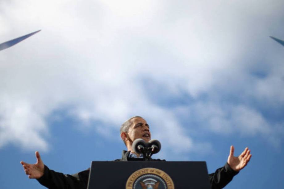 Obama discursa com moinhos de vento ao fundo (Chip Somodevilla/ Getty Images)