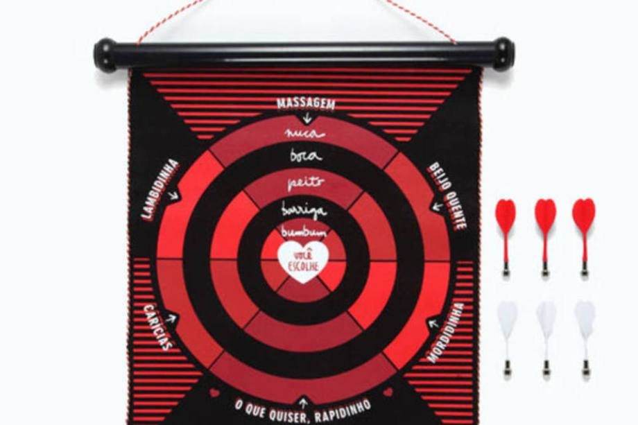 Imaginarium, é para mostrar que a máxima “sorte no amor, azar no jogo” não é necessariamente verdadeira. O kit vem com seis setas que devem ser miradas no quadro dividido em diferentes zonas. Cada área indica o que o jogador deve fazer e em qual parte do corpo. O resultado pode partir de um beijo na nuca até opções mais picantes. O preço da brincadeira é 79,90 reais.
