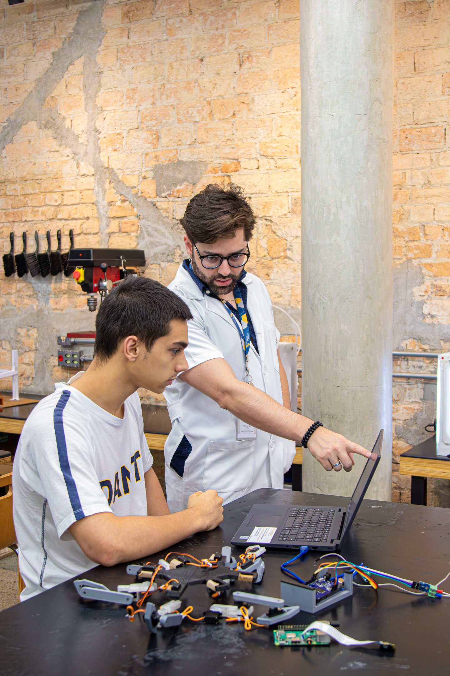 Professor Wayner Klën orienta o desenvolvimento do robô desde o início (Paulo Santos/Colégio Dante Alighieri)