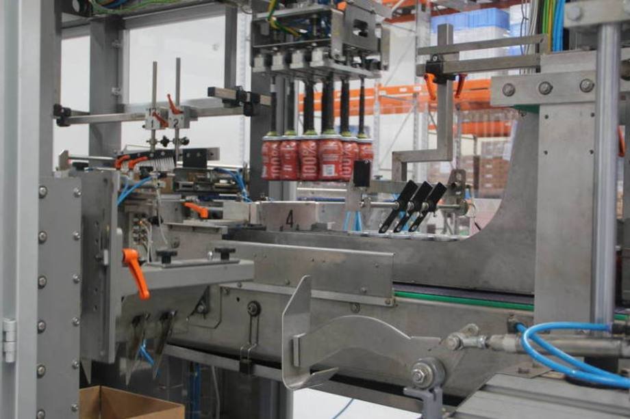 Um braço mecânico pega 12 unidades do produto e coloca na caixa de papelão. Ele está pronto para ir para os supermercados e lojas.