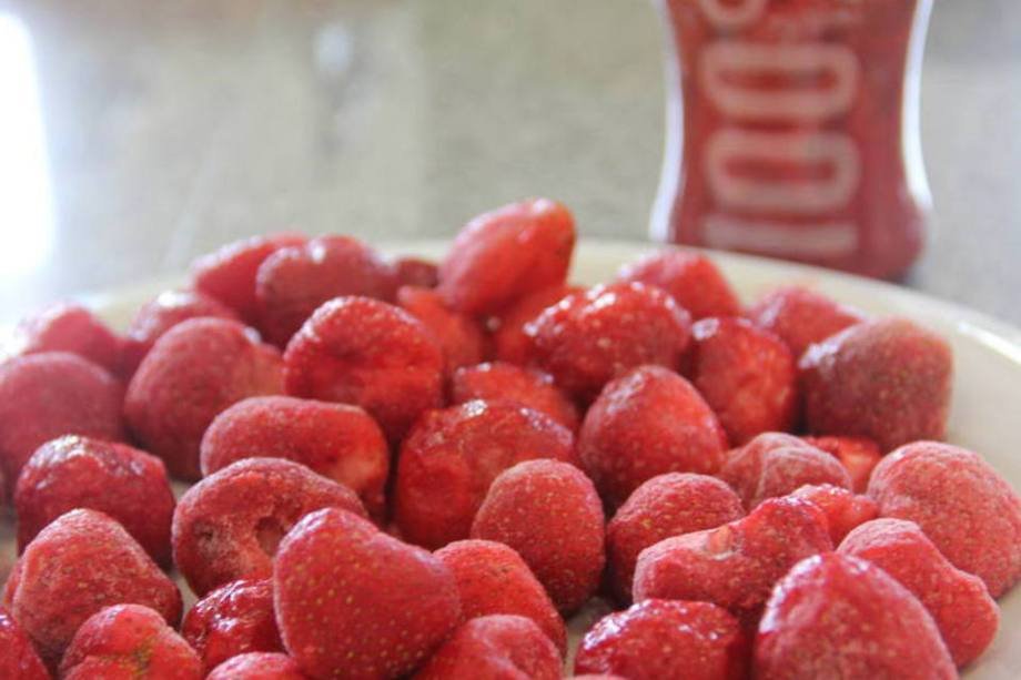 Assim que chegam na planta, as frutas congeladas vão para uma câmara fria. Aqui, as temperaturas chegam a - 17° C para conservar melhor os alimentos. A grande parte das frutas usadas nas geleias é importada. Entre as matérias primas nacionais, estão laranja, jabuticaba, goiaba, abacaxi, manga e açaí. A empresa busca e tenta desenvolver novos fornecedores nacionais que atendam aos seus padrões de qualidade - amoras e morangos ainda são importados.