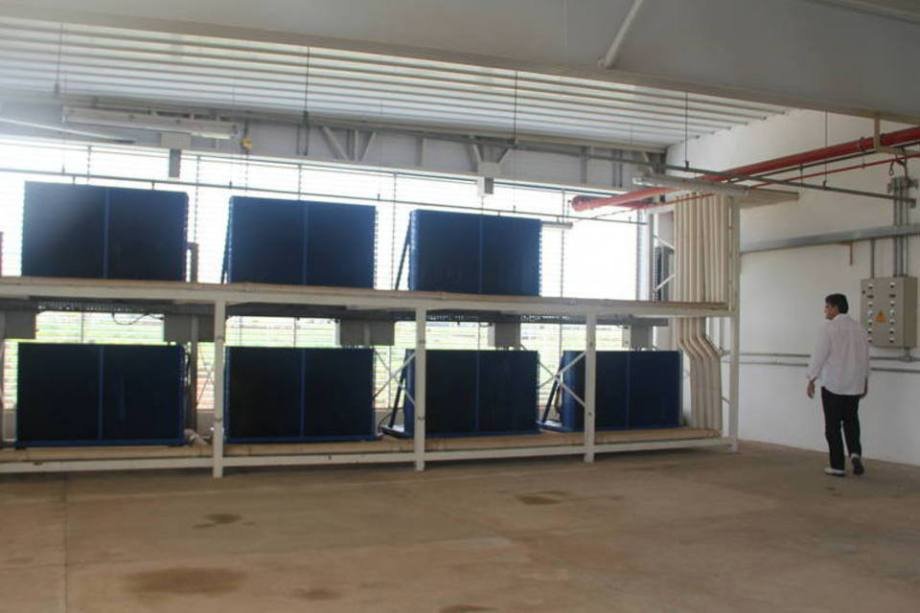 Em um ambiente aberto, fica o piso técnico. Nesse espaço, estão controles de toda a fábrica, como pressão e temperatura. Compressores que esfriam as salas de cozimento também ficam aqui.