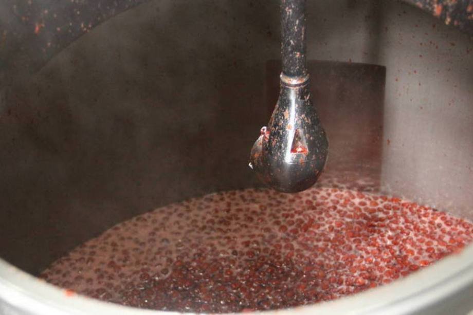 Em grandes tonéis, as frutas são cozidas a 85°C. Essa geleia, 100% fruta, não leva açúcar em sua composição. No lugar, um suco de fruta é usado para adoçar. Por causa do processo de envase, que é quente, também não há conservantes. Além de frutas, são adicionados apenas produtos para correções químicas, para equilibrar a acidez, por exemplo.