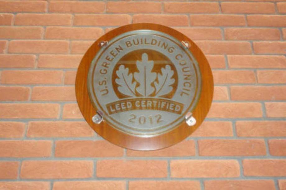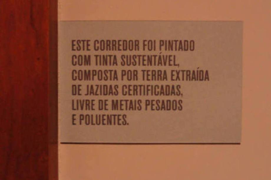 13. Informação do selo Leed de sustentabilidade, na McDonald's University: além das tintas sustentáveis, prédio tem iluminação com sensor de movimento e torneiras econômicas