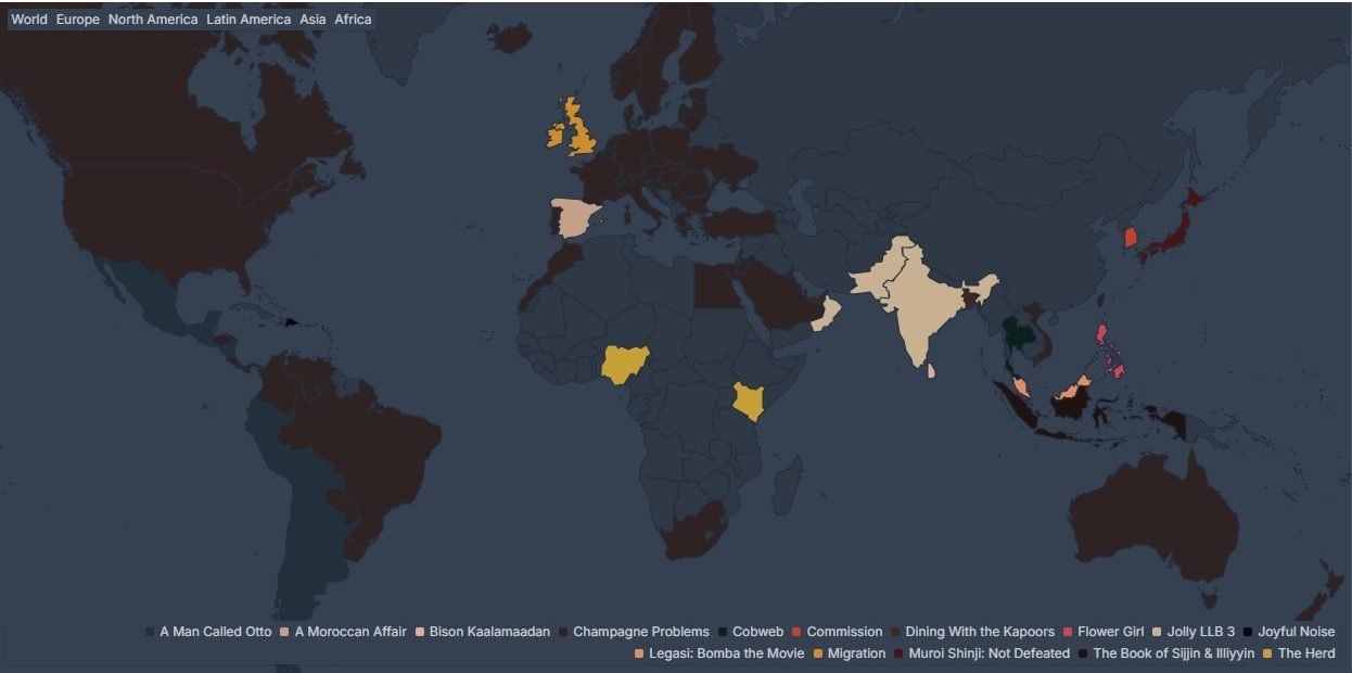 O longa foi o mais assistido na maioria dos territórios em que a Netflix disponibiliza o serviço de streaming. No mapa abaixo, os países em coloração marrom escura são os que têm "Borbulhas de Amor" no Top 1 da plataforma.
