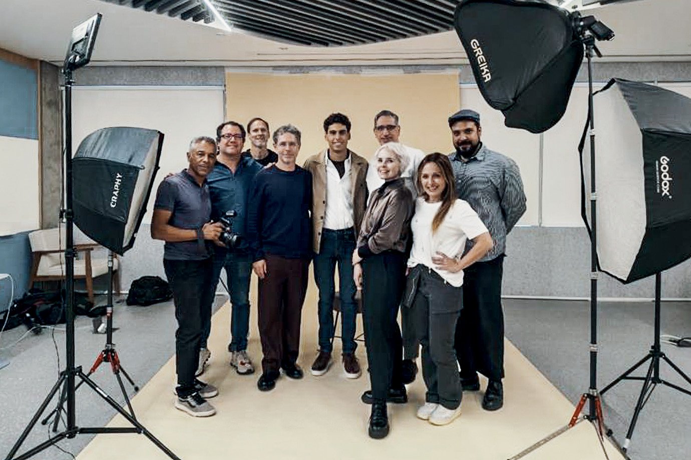 A foto da nossa equipe no ensaio: estreia de Bortoleto em uma capa de revista (Leandro Fonseca /Exame)