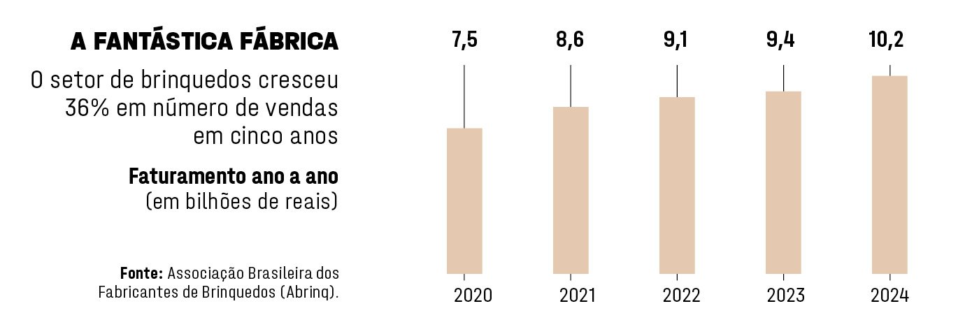 O setor de jogos (como tabuleiro, cartas, figuras e memória) foi de 9,1% em 2017 para 14,8% em 2024 em número de vendas, segundo a Associação Brasileira dos Fabricantes de Brinquedos (Abrinq).