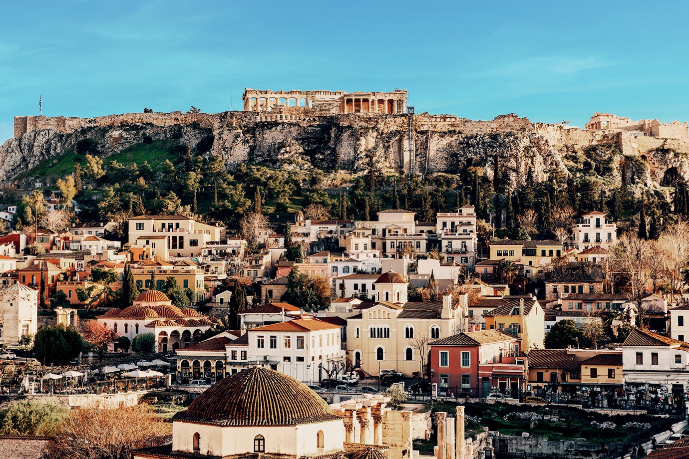 A Acrópole e o bairro Plaka, em Atenas: opções de visitas a destinos turísticos durante as paradas (Alexander Spatari/Getty Images)