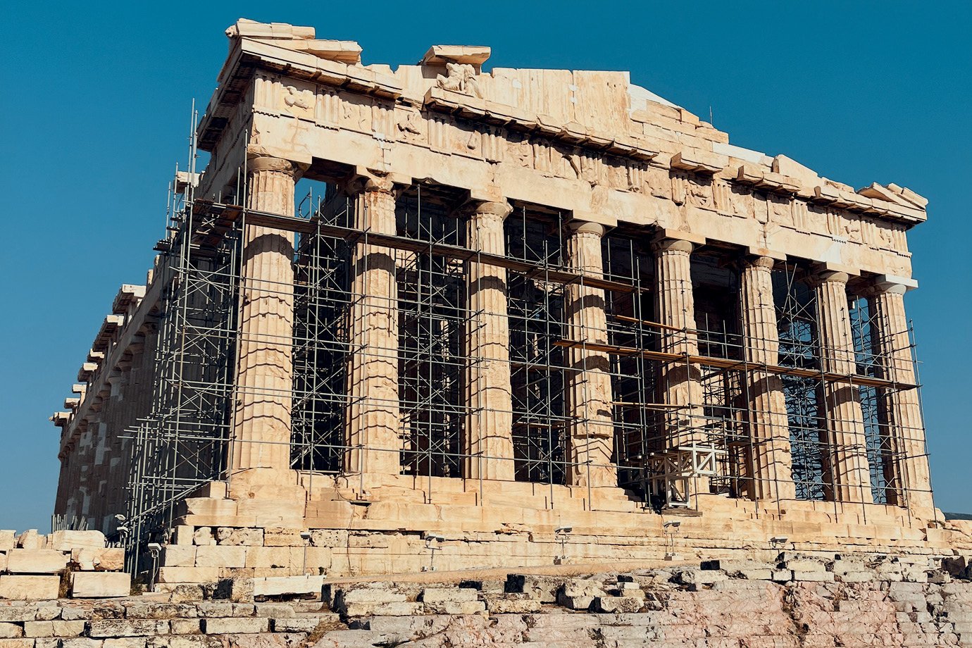 Assim como o Cristo Redentor pode ser avistado de diferentes localidades do Rio de Janeiro, o Partenon está presente na maioria das vistas de Atenas. À noite, a construção do século 5 a.C., feita em homenagem à deusa Atena, ganha destaque pela iluminação. Nas encostas está o Odeão de Herodes Ático, teatro construído há quase 2.000 anos e que ainda recebe uma programação cultural com peças e shows.