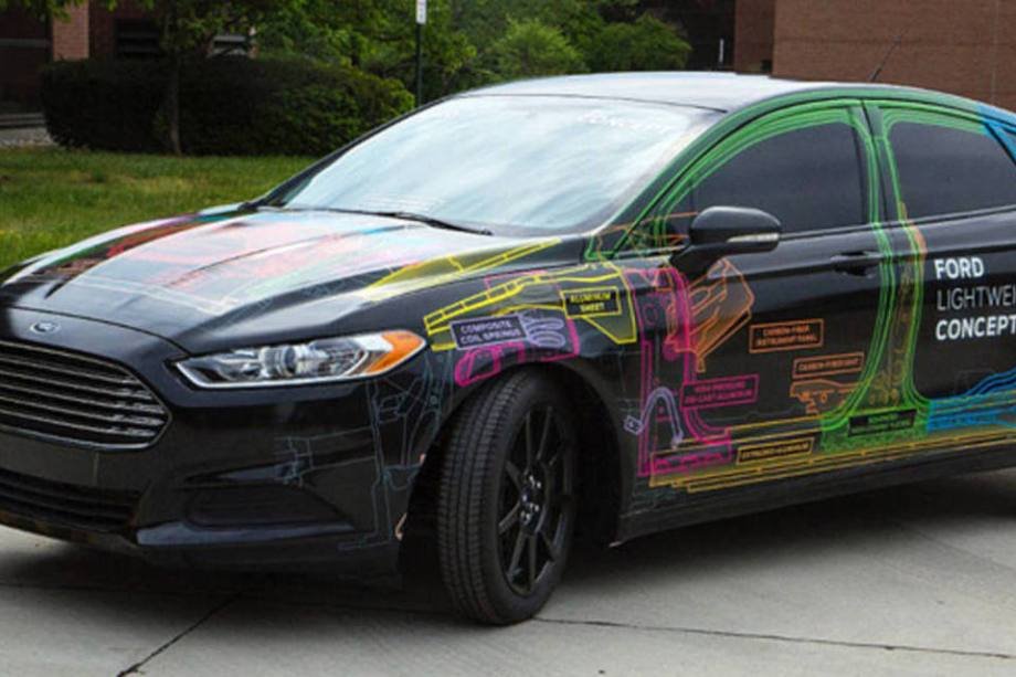 Menor peso significa gastar menos combustível para fazer o carro andar. A imagem ao lado é de um Ford Fusion pesando 300 kg a menos do que o normal--e atingindo o peso de um Ford Fiesta. Isso faz com que o automóvel gaste até 25% menos combustível em comparação ao seu peso original. Isso, graças ao uso de materiais mais leves, como peças feitas de fibra de carbono. Em um futuro controlado por carros elétricos, autonomia será algo importante. E quem gasta menos, vai mais longe.