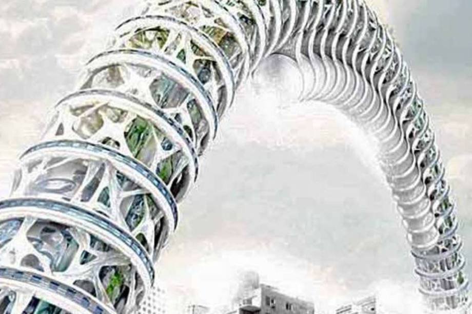 A estrutura é, de fato, na forma de um anlídeo, com curvas que se estem por toda a cidade, limpando do ar e tratando resíduos. Não para aí. Na parte superior da estrutura de tubos, solos preenchem as reetrâncias permitindo o cultivo de alimentos.