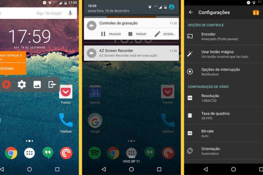 Grátis, em português, para Android Como o próprio nome já sugere, este app pode quebrar o galho de quem precisa gravar a tela do smartphone Android. Nas configurações, o usuário pode escolher a resolução na qual o vídeo final estará. Outras opções interessantes permitem a inserção de uma logomarca no vídeo e escolher se o microfone deve capturar o áudio ou não.
