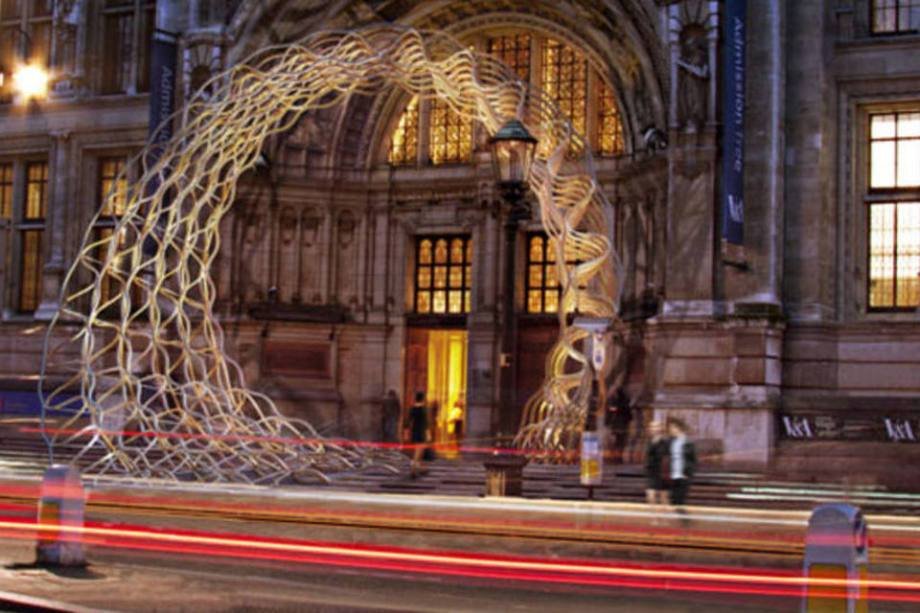Instalação montada na entrada do museu Vi%26A, em Londres (London Design Festival)