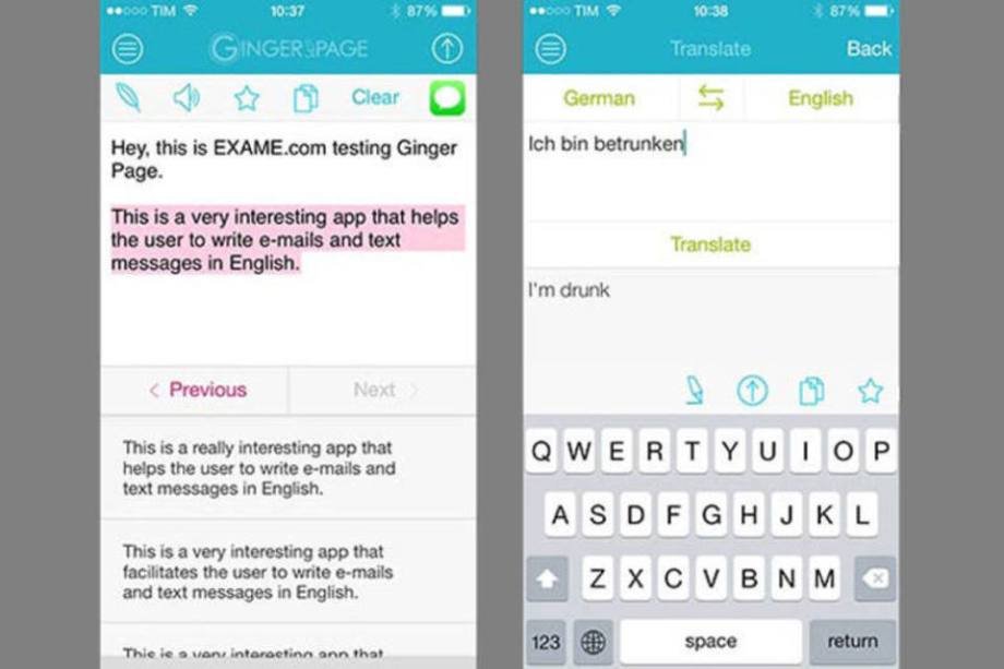 Grátis, em português, para Android e iPhone e outras plataformas Escrever em inglês é um desafio para muitos brasileiros. O Ginger Page ajuda com um kit de ferramentas que inclui um ótimo corretor ortográfico e gramatical. O app também faz traduções, lê os textos em voz alta, sugere reformulações de frases e lista sinônimos de palavras. Funcionou bem em nossos testes. A versão para Android inclui um teclado próprio, que deverá ser, futuramente, incorporado também ao app para iOS. Só achamos ruim não haver uma versão para iPad.