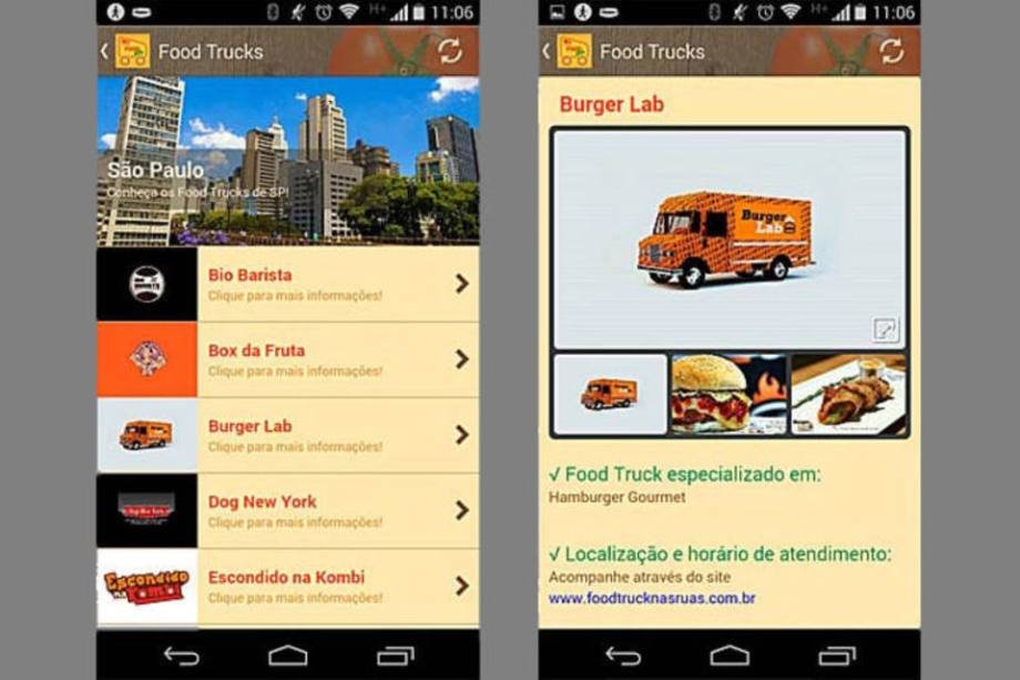 Grátis, em português, para Android Com o Guia Food Truck, fica mais fácil encontrar os food trucks, aqueles caminhões gastronômicos que estão na moda em muitas cidades. Ele lista food trucks nos estados de São Paulo, Rio de Janeiro e Rio Grande do Sul. Para cada um, informa horário de atendimento, cardápio, localização e outros dados. Um problema que encontramos é que os dados estão incompletos. Para alguns food trucks, não há informação de localização. Assim, é preciso entrar no site do caminhão para descobrir onde ele estará.