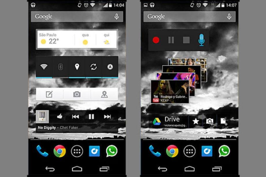 Com o sistema Android é possível personalizar as telas do smartphone e colocar informações usando widgets. A Apple já deu seu primeiro passo autorizando seus usuários a usar widgets, mas não nas telas principais. Com widgets padrão do Android, dá para colocar ações simples como ligar Wi-Fi, GPS e Bluetooth na tela inicial. Alguns apps também oferecem seus próprio widgets. Com o Gmail, os últimos e-mails ficam à vista. Com o Facebook, dá para visualizar menções e publicações de seus amigos.