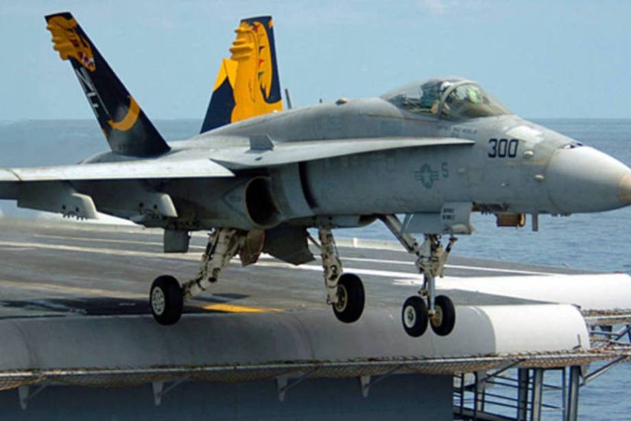 O F-18 Hornet, que voou pela primeira vez em 1980, foi o primeiro avião de combate americano projetado para atacar igualmente bem alvos aéreos e terrestres. Com asas dobráveis, ele é usado pelos americanos como caça baseado em porta-aviões. O F-18 já teve cerca de 1.500 unidades fabricadas. Foi um dos primeiros aviões a usar telas multifuncionais no painel. Elas podem exibir diferentes informações para o piloto dependendo de o avião estar em voo regular, em combate aéreo ou numa missão de ataque a alvos no solo, por exemplo. As versões mais recentes usam mostradores do tipo head-up, que projetam as informações em frente ao rosto do piloto, numa tela transparente. Os F-18 (chamados de F/A-18 em versões mais recentes) já dispararam mísseis sobre a Líbia no passado, em 1986, além de ter participado da guerra no Iraque. Agora, estão de volta à África, na versão usada pela Espanha e pelo Canadá. Feita para decolagem terrestre apenas, essa versão difere da que é usada nos porta-aviões por ter asas fixas e trem de pouso mais simples. O Hornet é usado, também, no esquadrão de demonstração da marinha americana, os Blue Angels. Além disso, os americanos querem vender a versão F/A-18 Super Hornet para a força aérea brasileira.