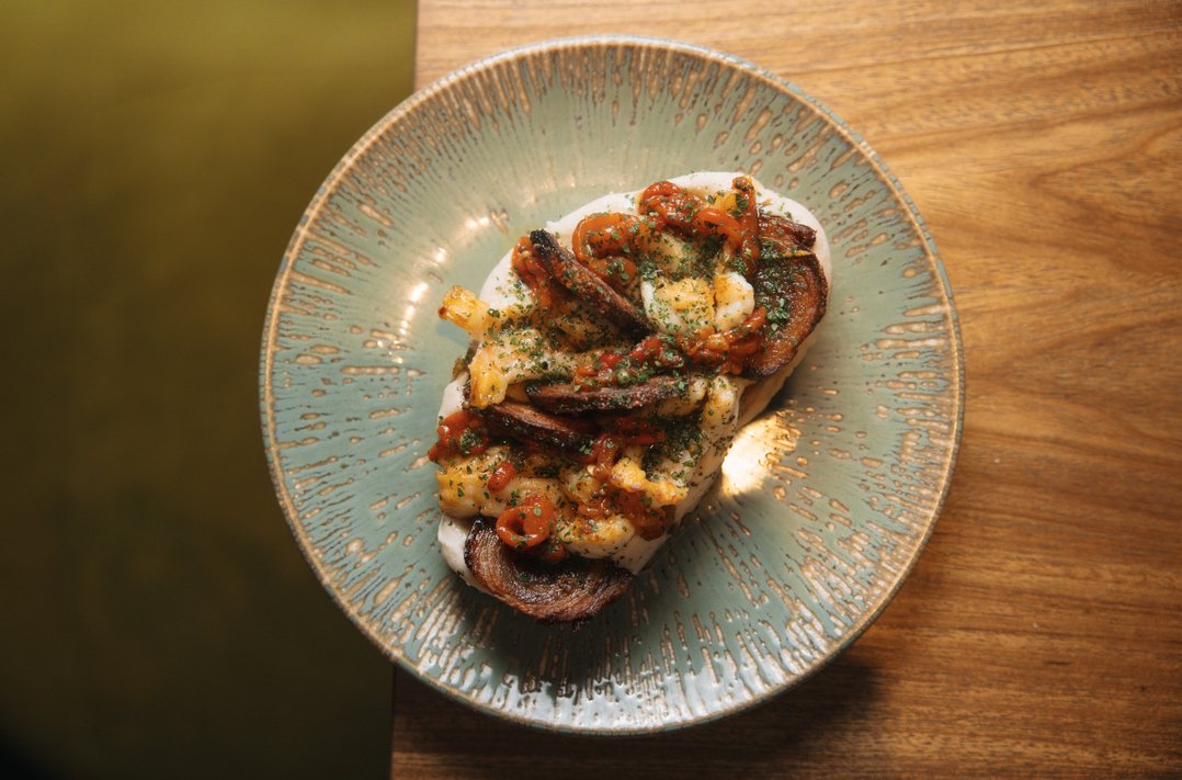 Joya: tartine de camarão e panceta (Juliana Primon/Divulgação)