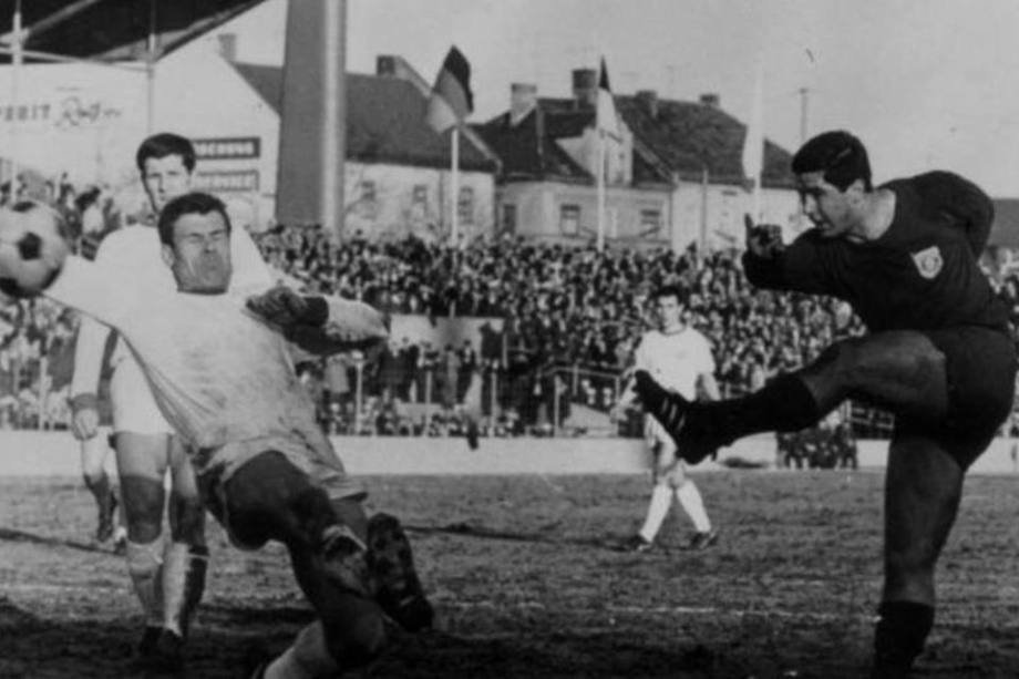 Alemanha Ocidental, Franz Beckenbauer, aperta as mãos do capital da Alemanha Oriental antes da partida na Copa do Mundo. A partida, disputada em plena Guerra Fria, tornou-se histórica já que os alemães orientais venceram os ocidentais por 1x0 com gol de Jürgen Sparwass. Já o Sarre é uma região da fronteira da Alemanha com a França que, após a II Guerra Mundial, tornou-se protetorado francês. Na sua curta existência a região disputou os Jogos Olímpicos de 1952 e os jogos classificatórios para a Copa do Mundo de 1954. A seleção do pequeno território (de 2500 quilómetros quadrados e com cerca de um milhão de habitantes),chegou a disputar uma partida com a Alemanha Ocidental justamente na etapa classificatória, mas perdeu de 3-1. Em 1956, seus habitantes escolheram, em referendo, a reincorporação na Alemanha.