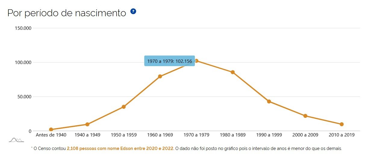 Nos anos 1970, Edson atingiu seu pico de popularidade como nome, com 102 mil registros. Foi a década em que Pelé conquistou sua terceira Copa do Mundo, mas antes mesmo desse feito o nome de batismo do astro do esporte já tinha tido um salto de popularidade. Na década de 1980, o nome continuou popular, apenas decaindo na década seguinte.