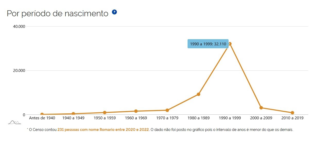 Romário: nome atingiu alto pico de popularidade na década de 1990, com mais de 32 mil registros (IBGE/Reprodução)