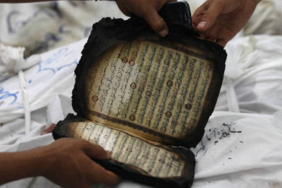 7. Cópia parcialmente queimada do Corão é colocada ao lado dos corpos de membros da Irmandade Muçulmana