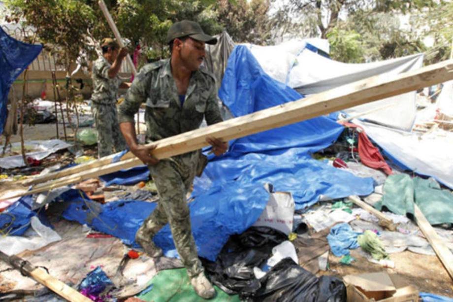 8. Soldado egípcio caminha pelos escombros de um dos acampamentos desmantelados pelas forças do governo