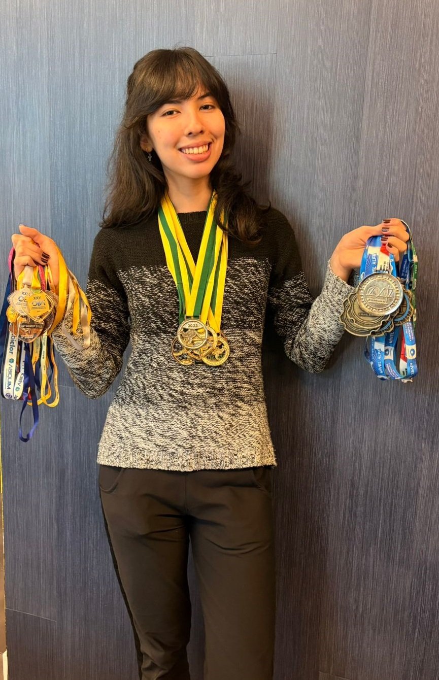 Entre provas, leituras e treinos cronometrados, Marcela Sayumi construiu uma trajetória marcada por disciplina, talento e amor pelo conhecimento (Arquivo Pessoal)