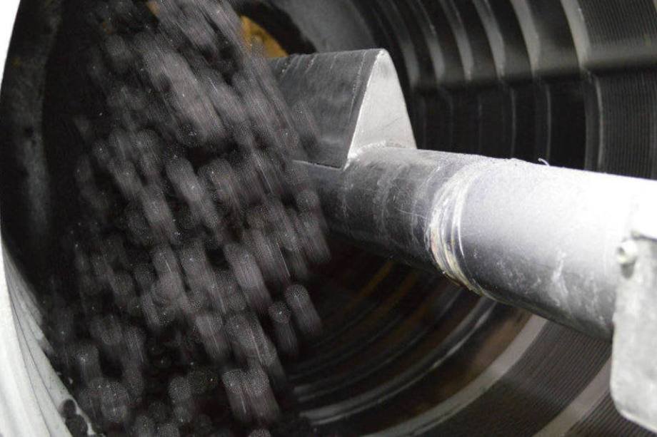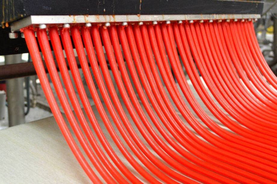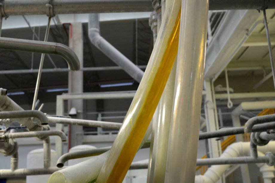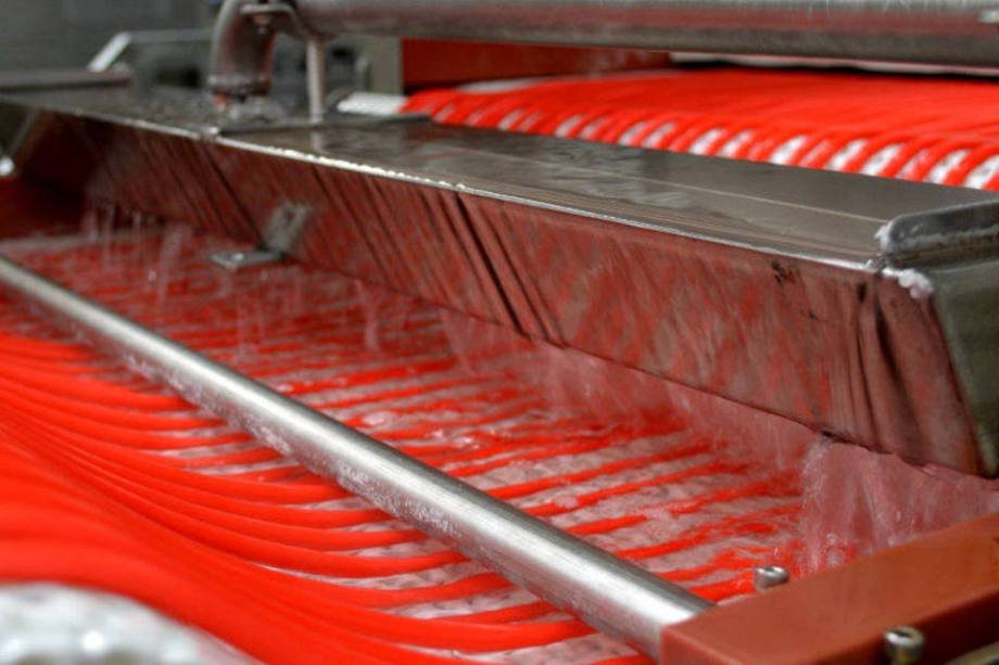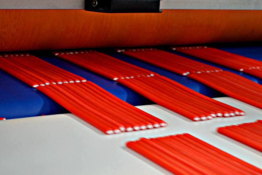 Na esteira de produção, os canudos podem atingir até 140 metros de comprimento enquanto passam por todas as etapas. Eles serão cortados só no final.