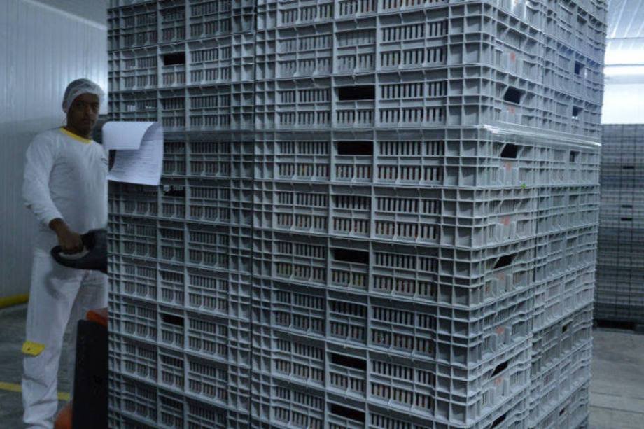 As bandejas são levadas para as câmaras refrigeradas, onde irão descansar por 24 horas em temperatura controlada. Na fábrica de Jundiaí há oito câmaras. Cada uma delas comporta 84 pallets, cada um deles com 145 bandejas.