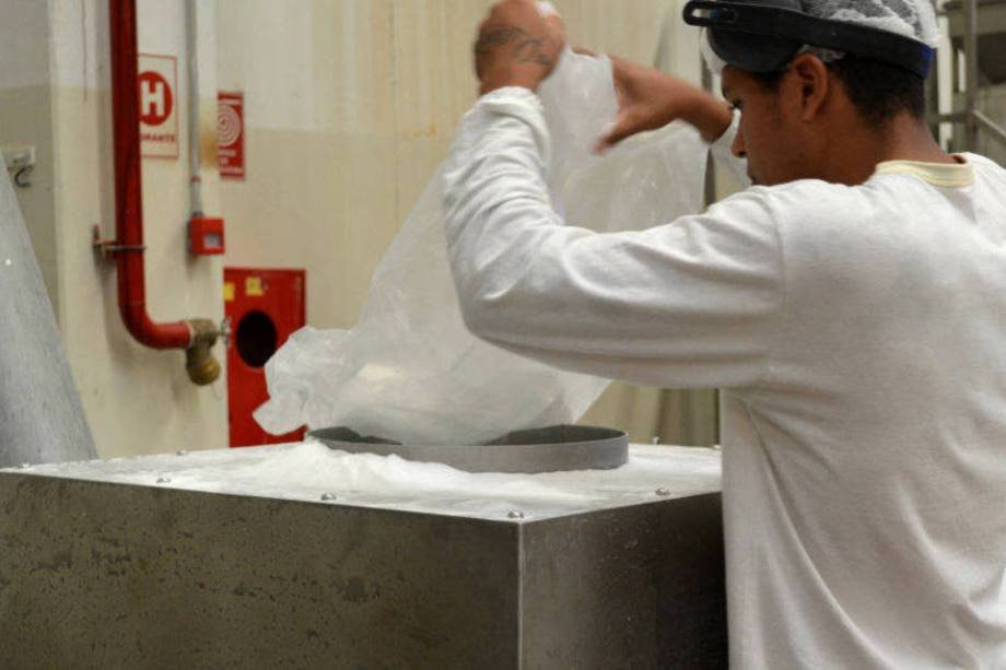 Um dos principais ingredientes é o açúcar. Ele é colocado no misturador para se unir aos demais compostos. A quantidade de cada um deles é, claro, um segredo industrial. A receita exata vem da matriz, na Espanha, e poucas pessoas dentro da fábrica no Brasil, a única fora do país sede, sabem ela completa.