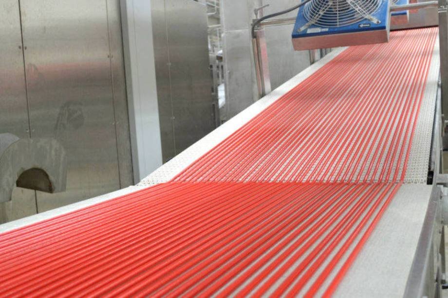 Deste ângulo é possível visualizar como as esteiras de resfriamento funcionam. Saindo desta etapa, os doces estão prontos para o acabamento.