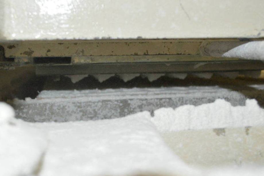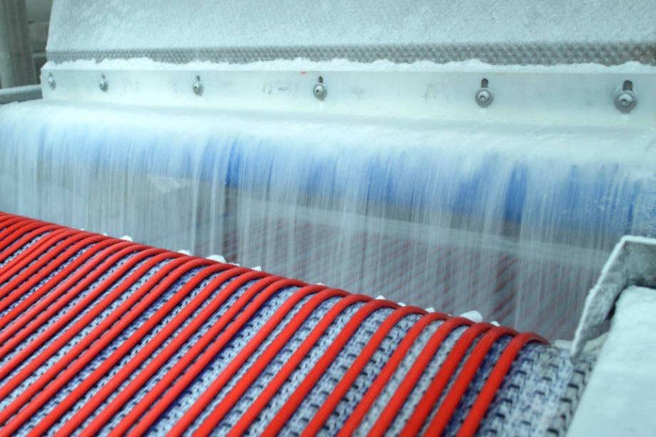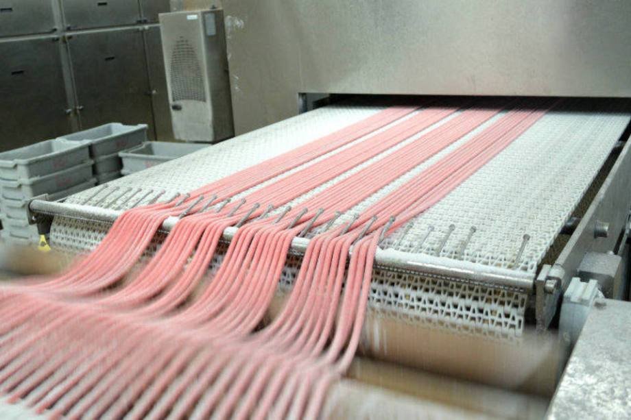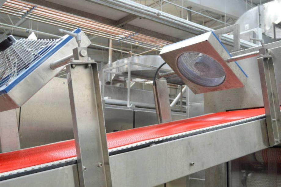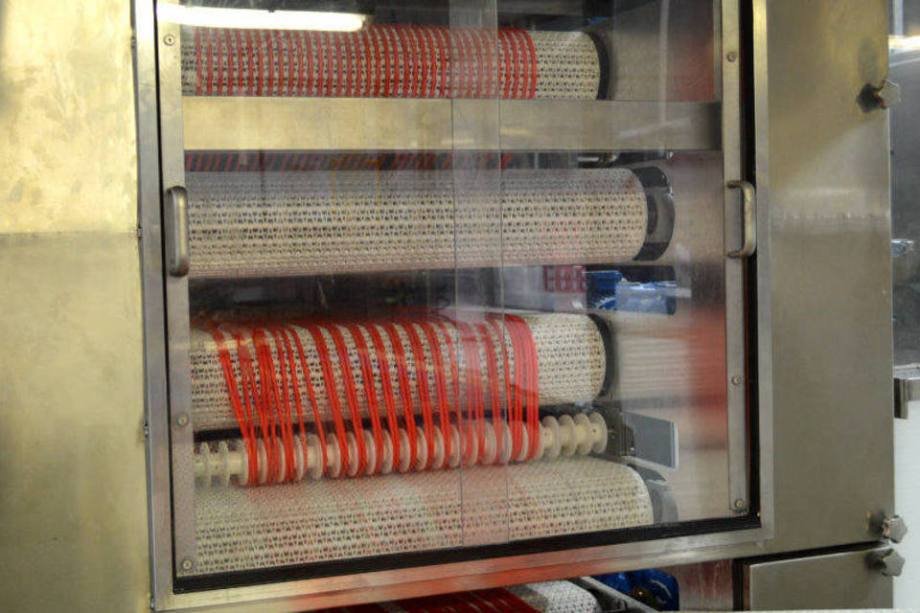 A massa sai da máquina ainda bastante quente. Por conta disso, ela passa por ventiladores, que irão iniciar o processo de resfriamento.