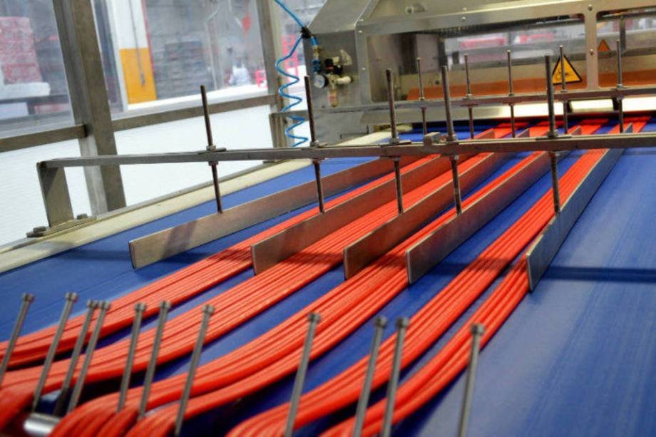 A máquina de cortes é programada de acordo com o ritmo da linha de produção para dar o tamanho exato ao doce.